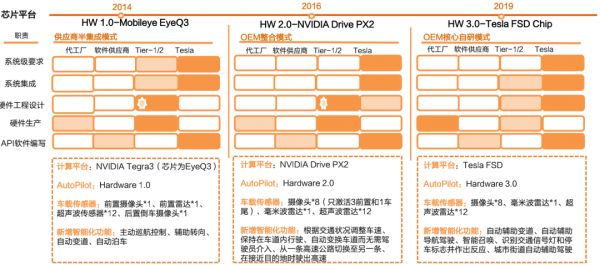 Δ 特斯拉自动驾驶芯片迭代之路。资料来源:天风证券