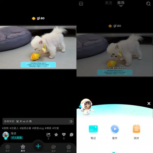 此外,“Hobby”还将短视频作为单独的功能,放到了App的底部导航栏中,短视频的内容主要以生活、潮流为主,用户可以上下进行滑动。此外,“Hobby”支持用户发布相关的内容,比如图文种草(“Hobby”内叫“笔记”)、视频内容(“Hobby”内叫“星作”),以及派对(派对可以线下和线上参与,由发起方进行组织)。