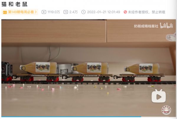 萌宠 UP 主“奶糕成精档案社”发布的视频《猫和老鼠》,借用了经典动画片的叙事模式,讲述了猫咪和小仓鼠之间有趣温馨的小故事,视频在B站播放超过1100万。