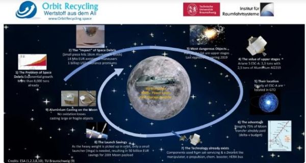 提交给欧空局开放空间创新平台(OSIP)的一个想法提出,轨道碎片可以用于在月球上就地生产资源。