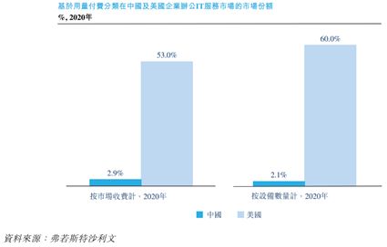 根据弗若斯特沙利文的资料,于2020年,就收入而言,基于用量付费分部的市场规模仅占中国企业办公IT服务市场的2.9%,显著低于美国市场的53.0%。于2020年,就设备数量而言,基于用量付费的办公IT市场的渗透率为2.1%,显著低于美国市场的60.0%。