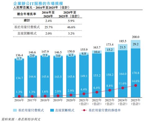 根据弗若斯特沙利文的数据,基于用量付费模式的办公IT市场规模预期从2020年的4.3亿元增长到2025年的29.2亿元,复合年增长率将达46.6%。