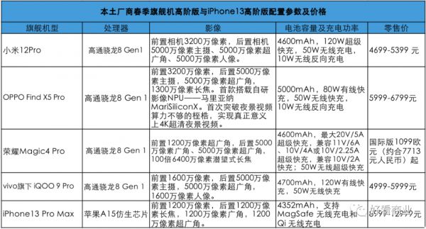 除了苹果或将在今年春季发布会上推出低端手机——iPhone SE3外,本土厂商都在推高端机。