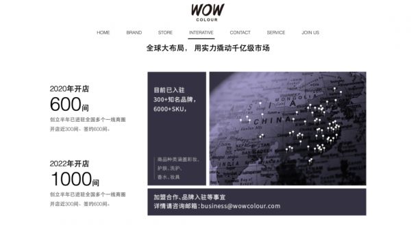 更早一些,在2020年1月,名创优品通过母公司赛曼集团推出了一个彩妆集合店品牌WOW COLOUR,主打网红彩妆。计划在2020年开出300家门店,2021年开出1000家门店。扩张的方式是与名创接近的加盟制。
