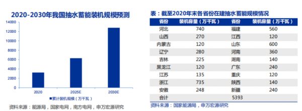 国家电网规划“十四五”新开工2000万千瓦以上抽水蓄能电站,2025年经营区抽水蓄能装机超过5000万千瓦,2030年达到1亿千瓦。