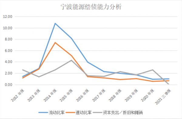 究其原因,还是由于资本支出的增加,使得宁波能源债务上升,流动比率和速动比率下降,偿债能力下滑。