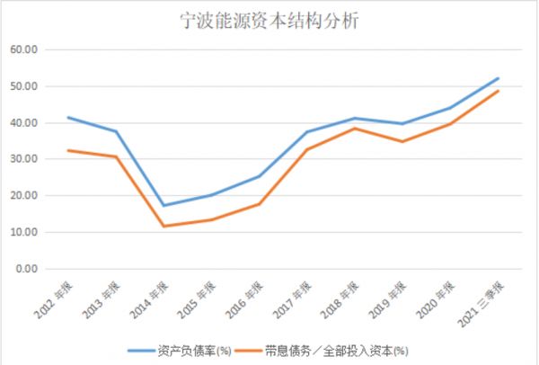 从资本结构来看,宁波能源近年来债务比率逐渐上升,利息支出同比上升。