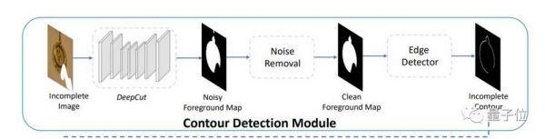 数据集做好之后,在正式训练轮廓补全模块之前,会先对显著对象进行轮廓检测。在这一环节中,没有输入图像的轮廓蒙版,而是使用了DeepCut来自动检测图像中的显著对象。
