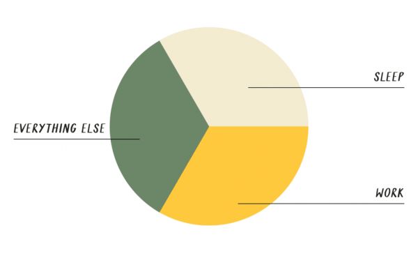 扣除睡觉的时间,一天就除去了近三分之一的时间。另外再算上八个小时的工作时间,就只剩下三分之一的空闲时间了,这还不包括通勤时间或是下班后回复邮件的时间。