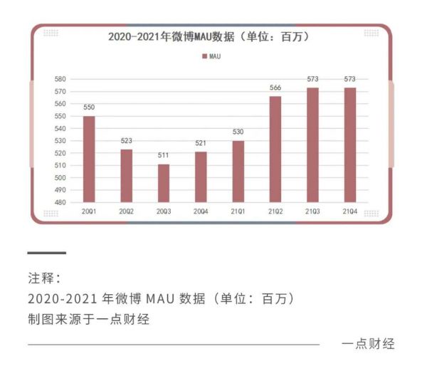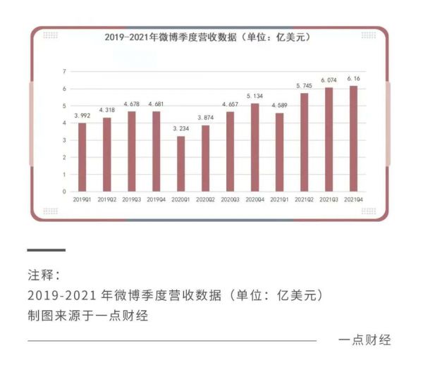 从3月3日公布的2021年第四季度报以及2021财年业绩来看,截至2021年四季度末,微博月活跃用户达到5.73亿,同比增长10%;2021年全年营收22.6亿美元,同比增长34%;净利润4.28亿美元,2020年同期为3.13亿美元。