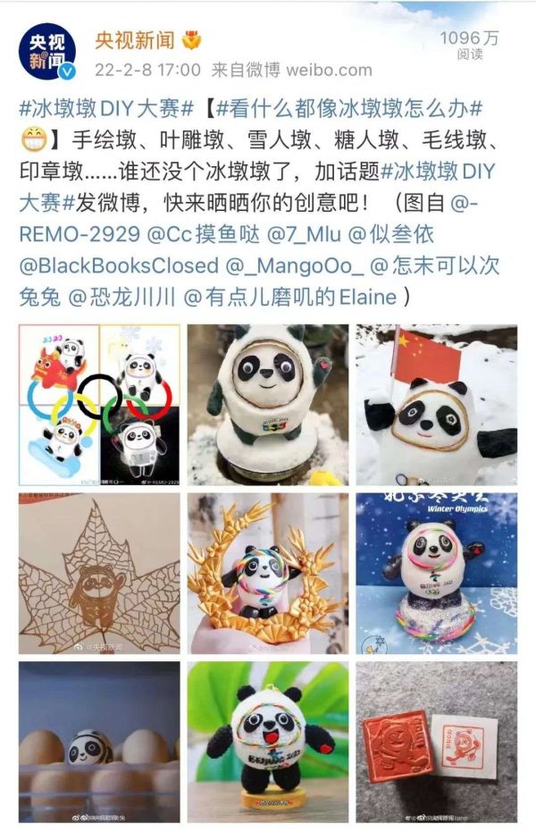 奥运期间,冰墩墩相关话题累计超过380次热搜上榜,相关话题阅读量达520亿,全网讨论量达2800万,冰墩墩超话新增73万粉丝。与此同时,各种冰墩墩表情包和二创内容借助社交网络全网传播。
