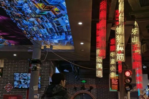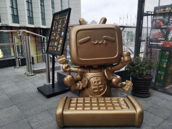 白天一直比较冷清的广场南端,傍晚五点一过,三三两两的年轻人便通过扶梯上到二楼。扶梯的尽头是个小平台,哔哩哔哩(以下简称B站)标志性的符号——小电视正静静地等候于此。如果不熟悉,或许会有些好奇,但这些陆续到来的客人显然并非如此。