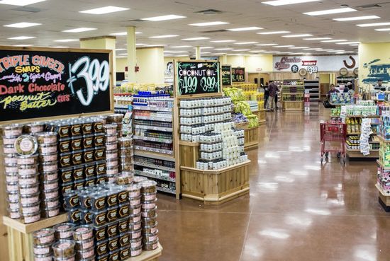 在门店装潢上,Trader Joe's也非常“复古”。它会用木质风格的货架,更暖的灯光,手绘风格的商品、价格标签。总之,一切都与“冰冷的科技感”拉开距离。
