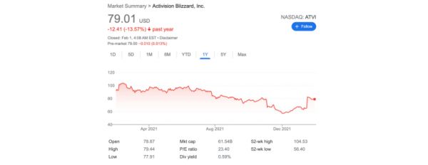 动视暴雪过去一年的股价