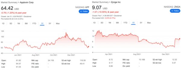 Zynga与AppLovin去年的股票表现