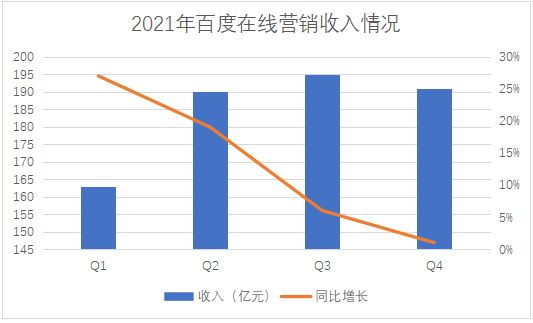 2021年,百度在在线营销方面表现的很平稳。