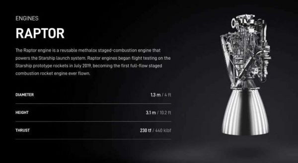 SpaceX 目前正在开发一种新型火箭发动机—— SpaceX Raptor,用于开发中的SpaceX Starship,Raptor(猛禽)发动机将使用低温液态甲烷和液态氧作为燃料,而不是该公司迄今为止使用的基于煤油的燃料。