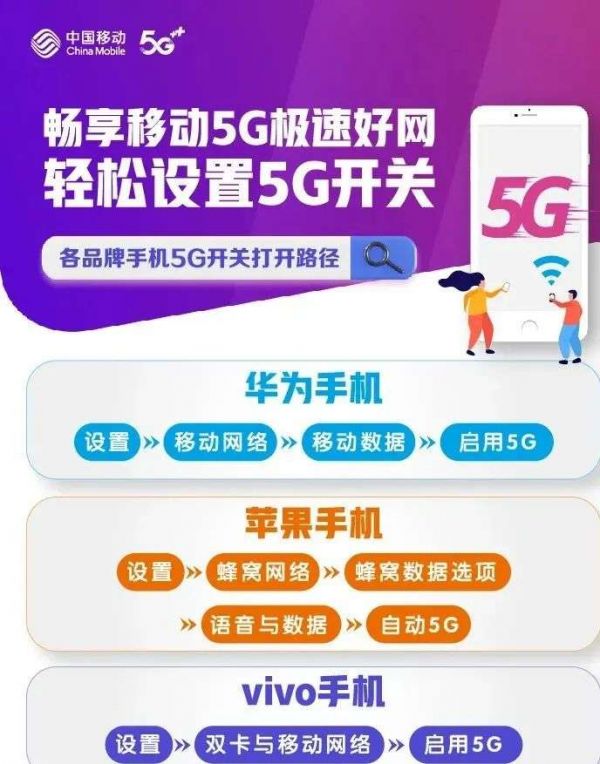 实际上,引导用户打开5G手机的5G开关,已经成为运营商各地分公司的重要任务之一。比如中国移动就专门制作了华为、苹果等主流手机产品如何打开5G开关的教程,有的地方分公司还推出了打开5G开关送流量等优惠活动。
