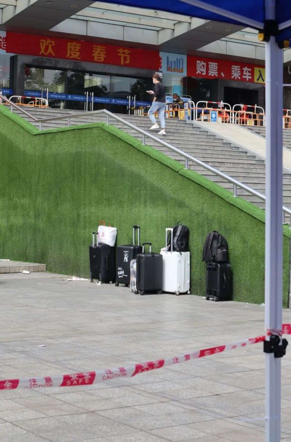 广场上的行李箱