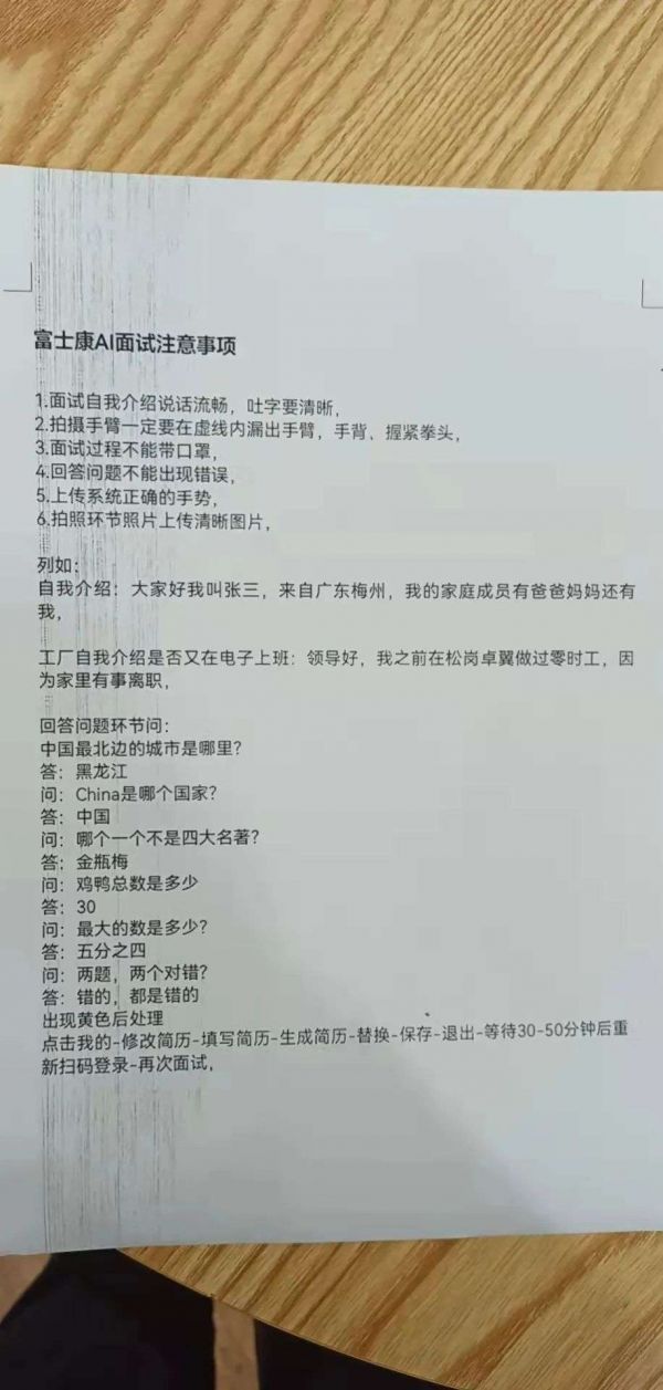 除此之外,和往常的简单筛选直接录取的流程不同,今天想要进入富士康,也需要完整走完线上笔试、线下面试等环节。