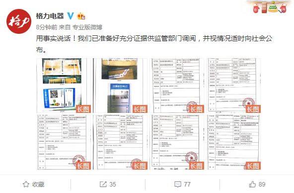 @凤凰科技【格力举报奥克斯事件升级:格力官微放出举报奥克斯证据】6月10日消息,实名举报奥克斯空调不合格后,格力电器再次在微博爆出猛料。格力表示,用事实说话,已准备好充分证据供监管部门调阅,并视情况适时向社会公布。格力电器表示,生产销售此类产品不仅严重侵害了消费者的合法权益,对国家节能减排环保政策。