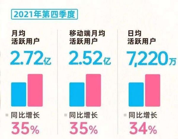 2020 年和 2021 年,在高营销费用投入下,B 站的用户数据表现不俗。2021 年第四季度,B 站月活用户达 2.72 亿,移动端月活用户达 2.52 亿。同时,B 站的正式会员数达 1.45 亿。在刚刚过去的 2 月份,B 站的月活用户已突破 3 亿。陈睿在财报电话会上表示:「我们仍然有信心实现 2023 年 4 亿月活的目标。」