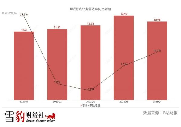 在B站营收中曾经占比超8成的游戏业务,在B站连年多元化发展中,已交出了“一哥”的位置,2021年全年营收占比26.7%,屈居第二。虽然B站多元化的营收构成看起来更健康,但游戏业务营收增速的持续降低也为B站带来隐患。