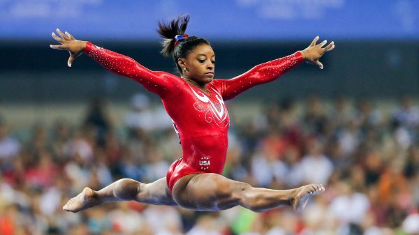 西蒙妮·拜尔斯(Simone Biles)多次获得过体操世锦赛全能冠军,她也是世界上获得奖牌数最多的体操运动员。她尤其以打破世界纪录而闻名,2019年全美体操锦标赛中,拜尔斯做出了两个此前从未有女运动员做出过的动作:平衡木团身720旋下以及自由操团身1080旋空翻。图片来源: NPR