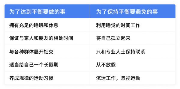 找到工作与休息的平衡点,利用平衡适当充电,以便在接下来的历练中做到最好。