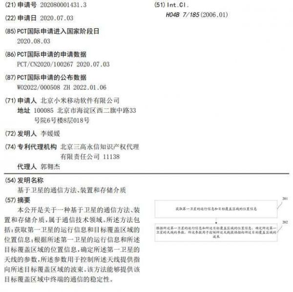 3月8日消息,近期,北京小米移动软件有限公司获得了一项名为“基于卫星的通信方法、装置及存储介质”的新专利,该项专利属于通信技术领域。