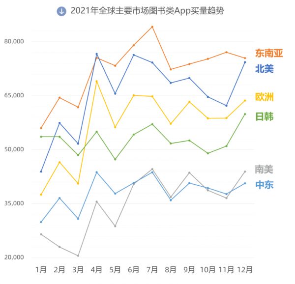 因此字节后期很有可能会借助 TikTok 来做 Fizzotoon 的推广增长。根据前一段时间 app growing global 发布的《2021 网文漫画出海买量白皮书》显示,全球多个地区的图书类 App 买量数量都在 2021 年有所增长。如果能够借助自家的 TikTok 做好营销,也可以让字节节省很大一部分买量成本。这样账算下来,加之做的日本市场,字节的漫画业务也并非没有跑正的可能。