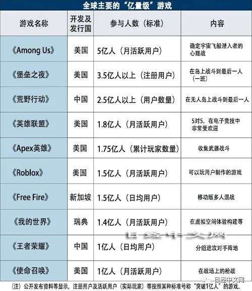 虽然不能用同一标准进行比较,但近年注册用户和月活用户超过1亿人的游戏有10部左右。比如《Among Us》,作为一款相对简单的心理游戏,月活用户人数有5亿人。拥有超过3.5亿注册用户的《堡垒之夜》的开发公司Epic Games正围绕发布游戏的手续费等与美国苹果展开诉讼。此外,还有很多可在电脑及智能手机上轻松玩的美国游戏和中国游戏。