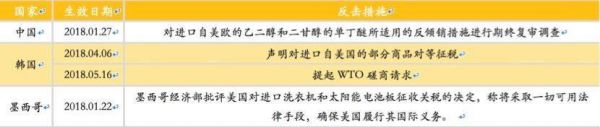 各国反击美国加征光伏产品和洗衣机关税措施一览表: