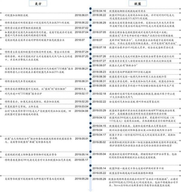 对欧盟,怂恿英法脱欧,并就关税施压。美国怂恿英法脱欧,意在瓦解欧盟。美国拒绝在对伊朗的制裁中豁免欧盟企业,去年年底悄无声息地将欧盟外交级别从“盟国”降到“国际组织”,今年3月才恢复欧盟外交等级。4月又因为欧盟起诉波音非法补贴一事,以回应欧盟空客补贴造成的损失为由,对拟对110亿美元产自欧盟的商品加征关税。最近又就欧洲建立防御基金等防御计划对欧盟发出警告。