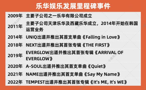 作为内娱最知名的偶像经纪公司之一,乐华娱乐成立于2009年,如今已成为了一家包括艺人管理、音乐IP制作与运营以及泛娱乐业务三大互补业务板块在内的文化娱乐平台。成立13年的时间里,乐华见证了内娱偶像市场从冷清到大爆发再到如今趋于冷静的全过程,在此期间,乐华也曾多次寻求上市。