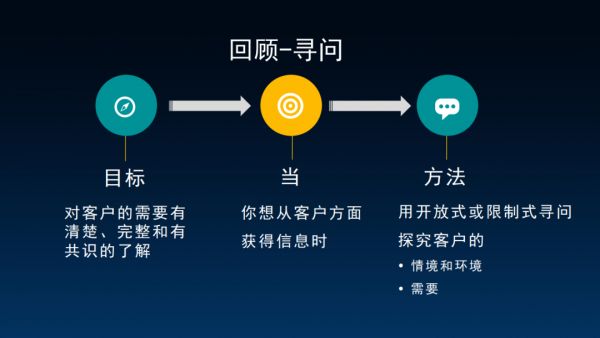 询问的目的是对客户的需要有一个清楚、完整、有共识的了解。
