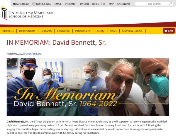 3月9日,马里兰大学医学院在其官网发布消息称,人类历史上首个移植基因编辑猪心的患者David Bennett(大卫·贝内特)已经于周二(3月8日)去世,距离其接受手术约两个月。