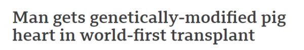 人类首次将转基因猪心脏移植到患者体内