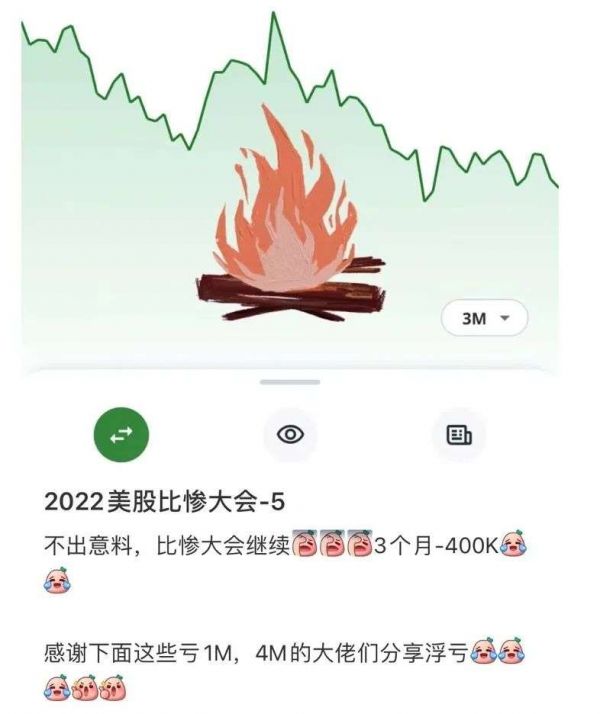 “每次大跌我就看到社交媒体上一堆人在那说,美股又打折了赶紧买,我也就忍不住跟着下手。”一位小散户向硅星人分享了他最近被一路收割的心路历程,“结果这一买真的就没底了,宝马变丰田,House变Condo。”