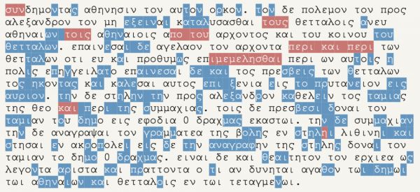 放眼历史长河,尽管这两个数字看起来差别不大,但这些法令对当前人类理解古雅典的政治史是至关重要的。此外,历史学家们也与 Ithaca 一起,重新复原了希腊历史上一次关于雅典卫城的法令。
