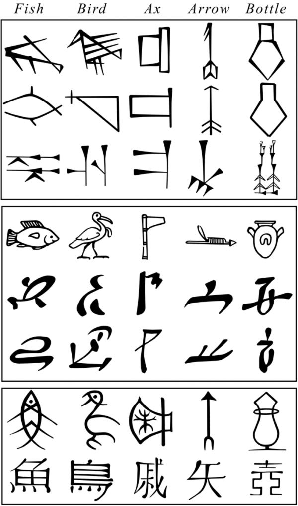 图|不同象形文字的演化(来源:维基百科)