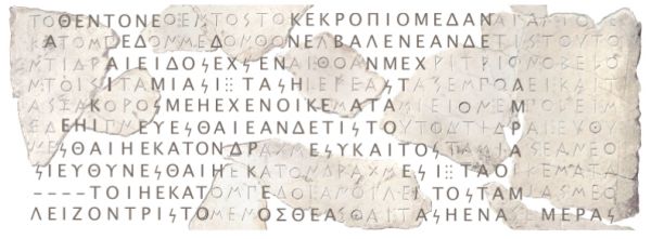 图|修复后的铭文记录了一项关于公元前 485/4 年雅典卫城的法令