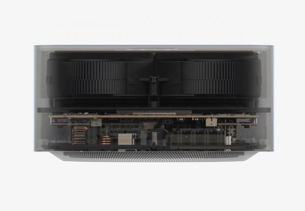 这就让苹果可以在保证产品性能的同时将产品的整体体积降低。根据发布会信息,此次登场的M1 Ultra主要应用于其新Mac产品Mac Studio上,由于台式机芯片不能向像手机芯片那样直接舍弃散热组建,但尽管加上双离心风扇,Mac Stidio的整体机身底边长仅7.7英寸,高仅为3.7英寸。
