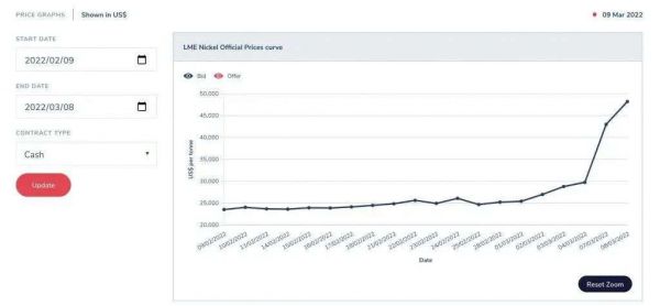 为此,伦敦金属交易所紧急暂停了镍的交易。取消所有在英国时间 2022 年 3 月 8 日凌晨 00:00 或之后,在场外交易和LME select 屏幕交易系统执行的镍交易。
