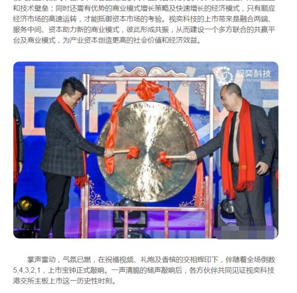 此后,有网络文章称“视奕科技港交所主板上市财富峰会圆满落幕”,并配有多张疑似活动现场的图片。