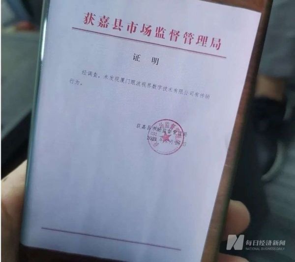 针对上述报道,眼波公司负责人告诉记者,获嘉县市场监督管理局已经在2021年8月出具了证明,证明的主要内容为:“经调查,未发现厦门眼波视界数字技术有限公司有传销行为。”