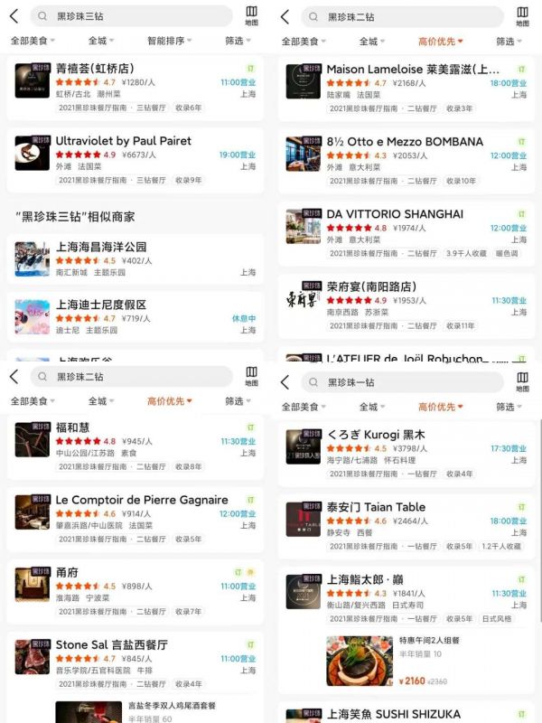 来源/燃财经截图 图/上海部分黑珍珠餐厅