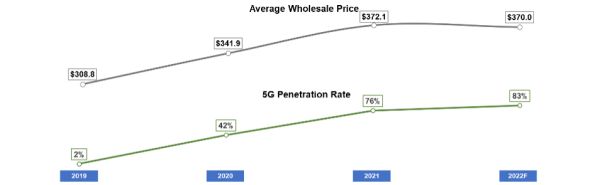 以消费行为中的锚定效应做举例,如果折叠屏手机能够进入到4000元内,将开启一波大的普及潮。据Counterpoint Research 研究副总监Ethan Qi在对中国市场的深入分析中指出,尽管市场表现低迷,但是2021年平均批发价从2020年的342美金(约高于2100人民币)飙涨至372美金(约高于2300人民币),涨幅接近9%。600美金(约高于3700人民币)以上的市场份额一直都维持在20%左右,而在此之前一直维持在15%以内。