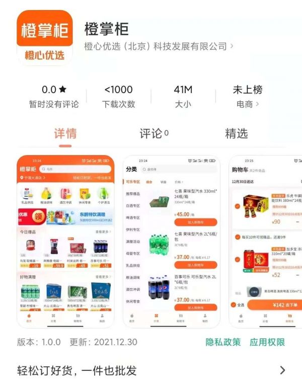 不过,就在橙心优选放弃C端业务的同时,又在安卓版APP市场中上线了一款新应用“橙掌柜”,据了解,这款应用的定位是零售B2B撮合平台,目前已在河南、河北、云南、福建、广东等地区陆续开展业务。