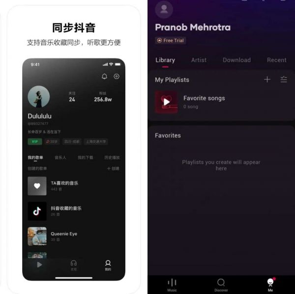 当然,除了看不见的个性化推荐算法,汽水音乐也能看到一些小惊喜。比如个人主页页面,能看到延续了Resso中的“Artist”入口,第一次在二级入口中突出了“音乐人”的标签,这在国内音乐平台是没有的。而同步抖音收藏的功能,也大大减少了抖音用户的音乐收听路径。